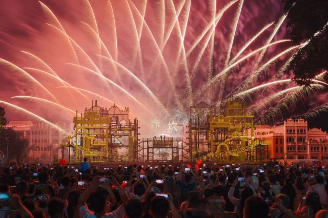 赤坎华侨古镇大型演艺“水火秀”。(赤坎华侨古镇景区供图)