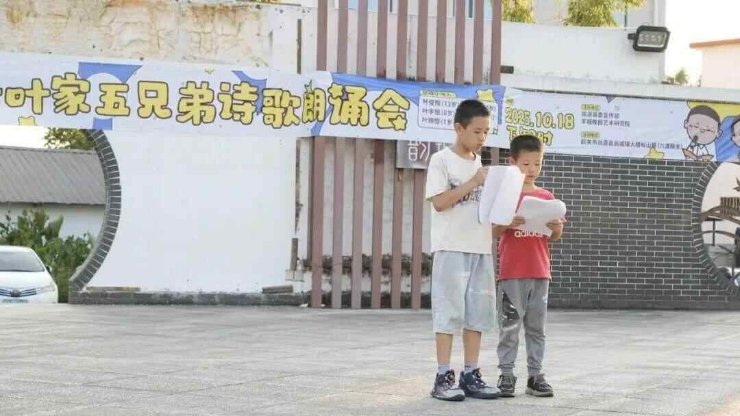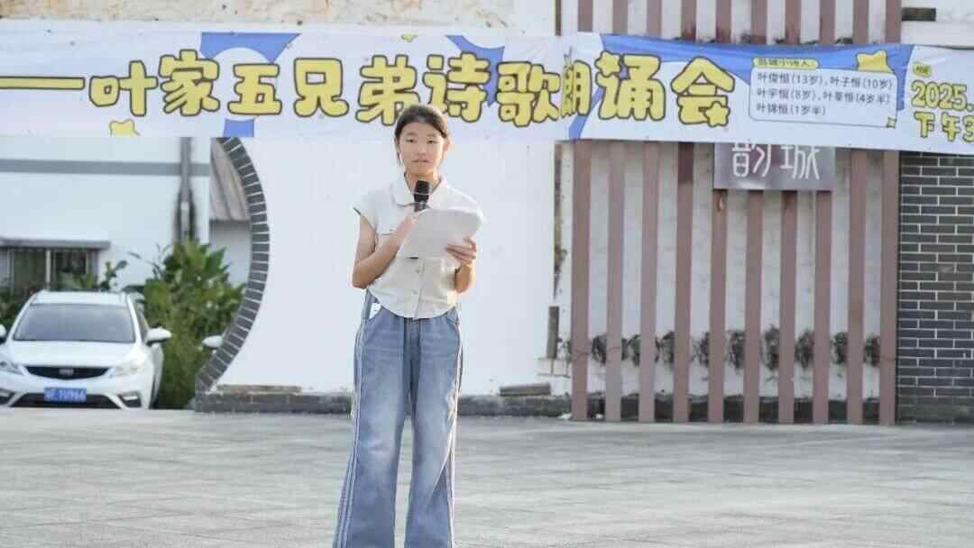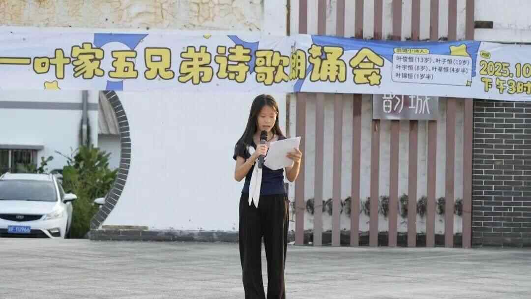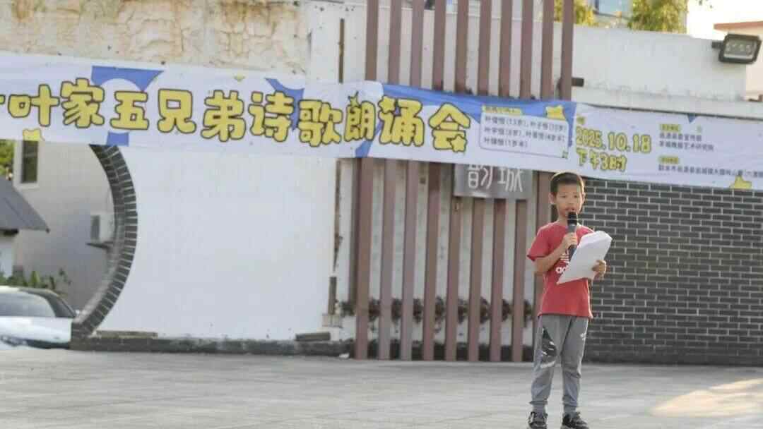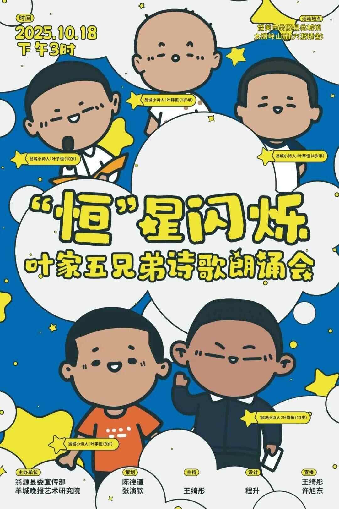 2025年10月18日,翁城文化公园内童声朗朗,诗意盎然。一场别开生面的“‘恒’星闪烁——叶家五兄弟诗歌朗诵会”在这里温馨举行,为秋日的午后注满了活泼的童真与文学的暖意。