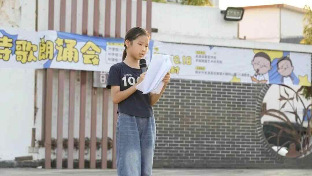 活动的氛围在兄弟们的互动中推向高潮。他们不仅展示了自己的诗作,还热情地邀请了自己的同学和好友一同上台朗诵,“翁城李白”也受邀朗诵了他们的作品《秋天来了》。不同孩子的诗歌在舞台上交相辉映,共同编织出一幅纯真的童年画卷。