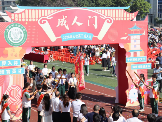 2025年10月18日上午,广州市培英中学鹤洞校区为2026届高三学子在运动场隆重举行以“筑梦湾区迎全运 青春同心向未来”为主题的成人礼仪式。醒狮欢腾,鼓点激昂,为这场青春的盛典拉开序幕。