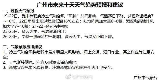 据@广东天气,台风“风神”今日(19日)傍晚前后将进入南海,强度逐渐增强。受台风和冷空气共同影响,19-22日广东省海陆风力加大,部分市县气温自北向南逐渐下降,过程降温幅度约6~10℃。