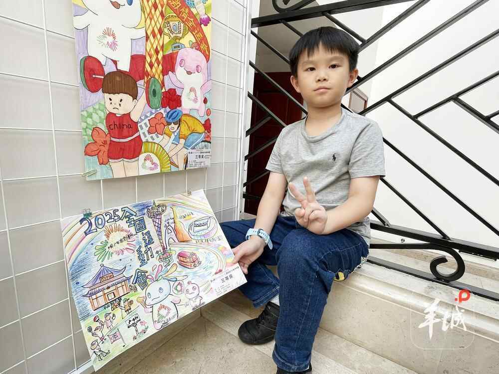 来自香港荃湾天主教小学的苗承霖从幼儿园开始学习画画,在此次比赛中,他的作品《同心全运会》获得了三等奖。