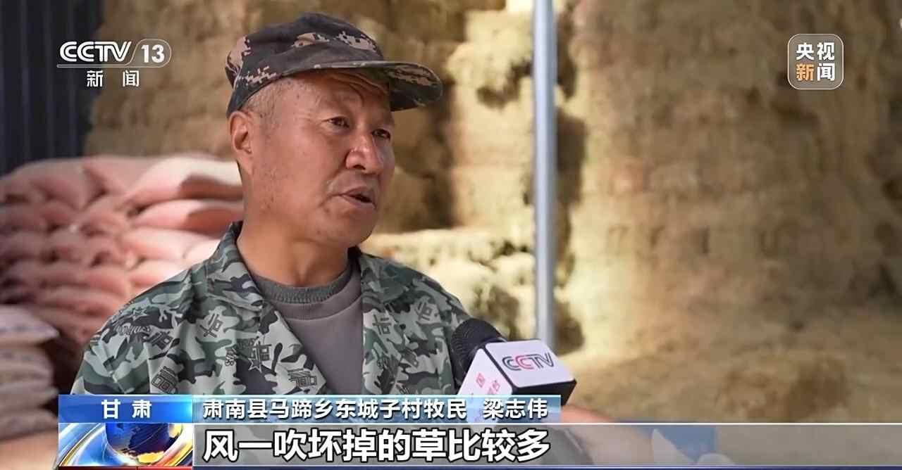 肃南县马蹄乡东城子村牧民 梁志伟:原来我们家里的时候没有棚,你拉来的草还得盖上塑料,风一吹坏掉的草比较多,随便损失就好几千块钱。有了这个棚就方便多了,草也放到这里面了,料也放到里面了。