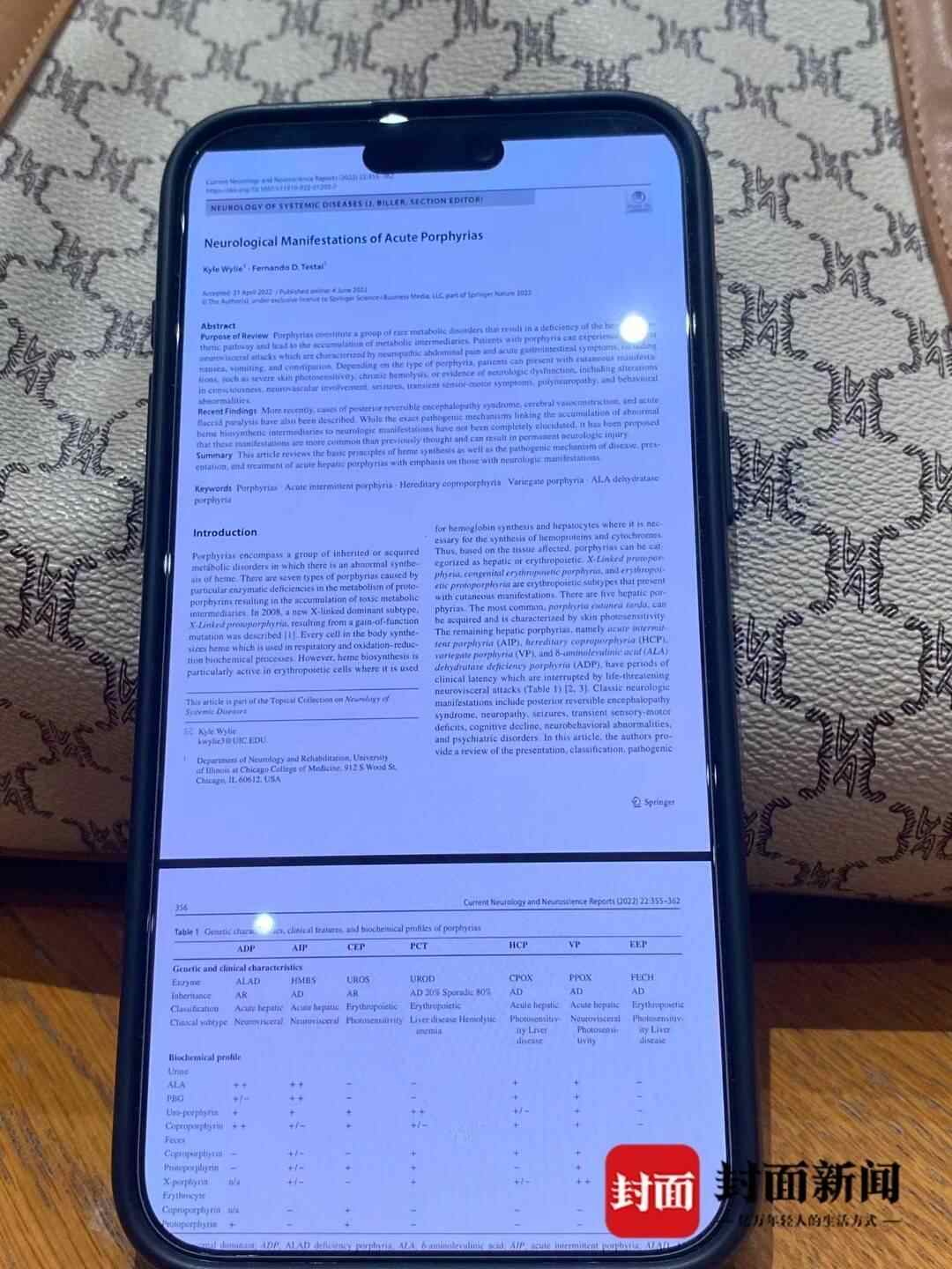 他在医学期刊网站上搜索关键词,用翻译软件逐字阅读英文文献。一篇关于“肝性卟啉病”的文献引起他的注意。