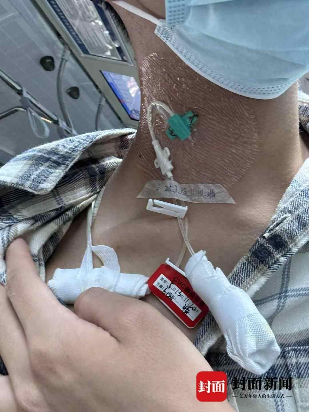 为了便于输液,杨晨燚的脖子上安置着CVC静脉导管。