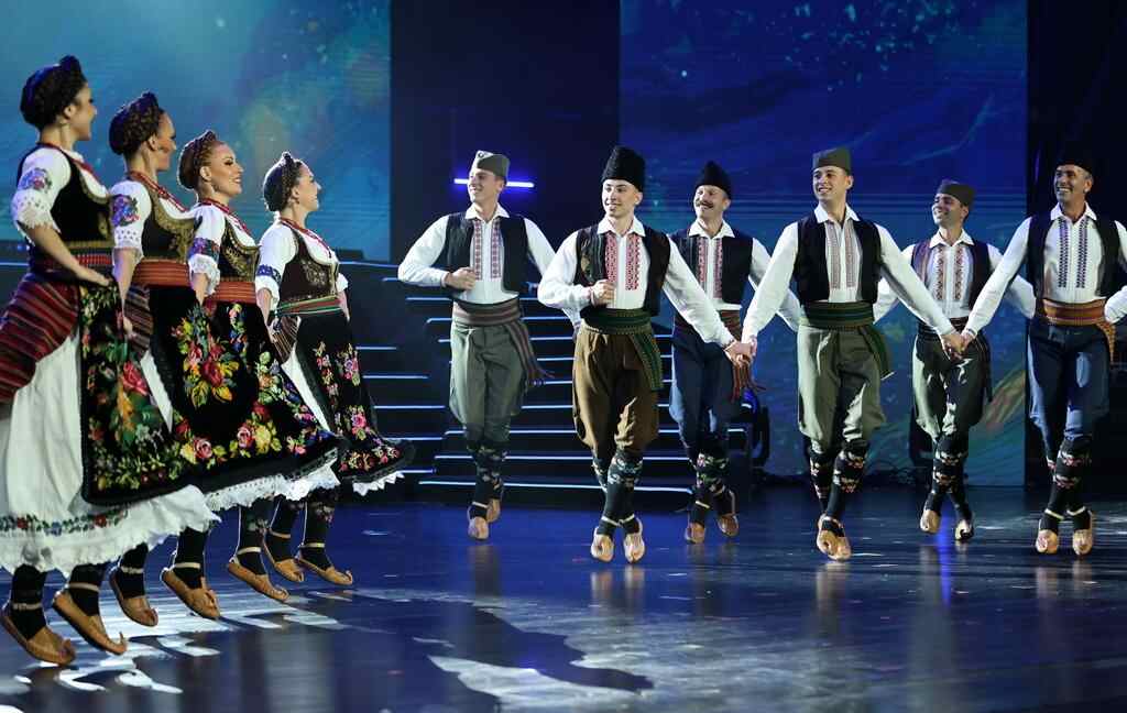 10月16日,塞尔维亚科洛民族歌舞团在表演舞蹈《舒马迪亚舞蹈》。