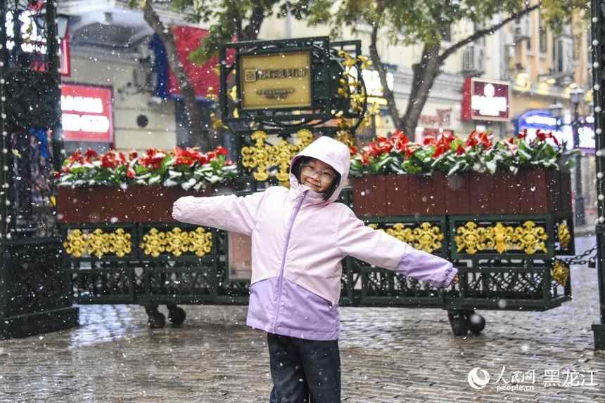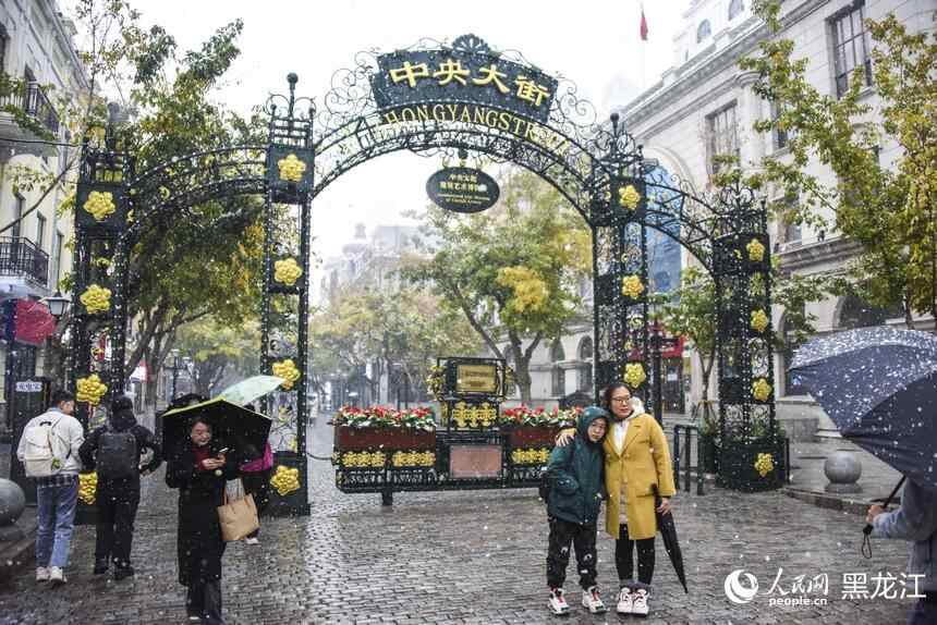 人民网哈尔滨10月17日电 10月16日晚至17日,哈尔滨市迎来降雪天气,这场降雪让素有“冰城”之称的哈尔滨一夜之间进入“冰雪模式”,一片片雪花落在哈尔滨的大街小巷,将松花江畔、中央大街、防洪纪念塔等标志性景观装点成“童话世界”。