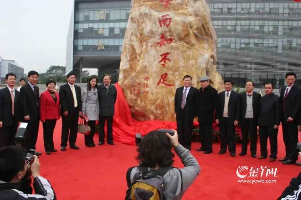 1993年,杨振宁首次来到东莞理工学院,他不仅作了一场精彩的学术报告,还欣然接受聘请,担任该校名誉校长,这也是他首次在国内外高等院校担任此职 。当时,他亲手植树留念,并题写“学而知不足”勉励学子。2008年,该题词被奉为校训,并勒石为校训石。