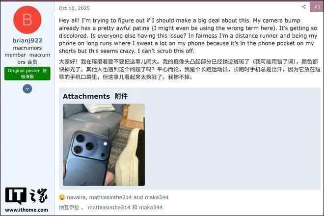 综合多位用户的描述,褪色问题似乎存在统一的规律。具体表现为,颜色首先从凸起的相机岛区域开始变淡,然后逐渐扩散至整个铝合金材质的机身边框。值得注意的是,机身背部的中央哑光玻璃面板并未受到影响,与褪色后的金属部分形成了鲜明对比。