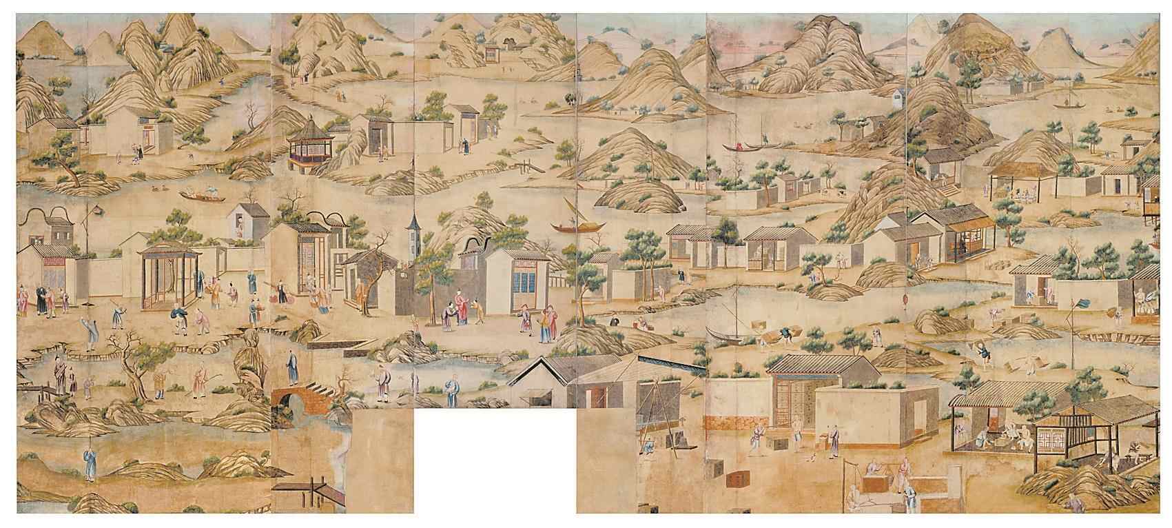 ■清乾隆广州手绘农耕商贸图外销壁纸(局部)