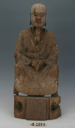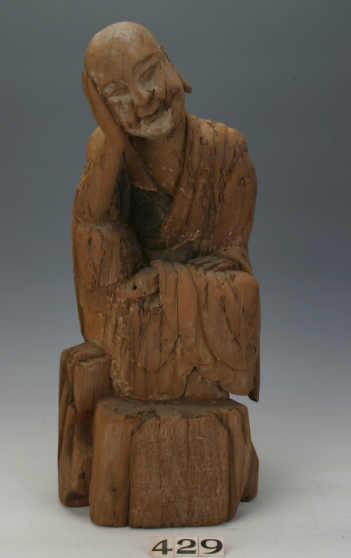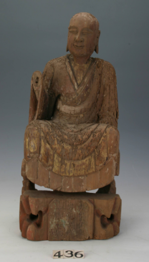 广东省博物馆藏北宋木雕罗汉像共十件,原供奉于广东省韶关市曲江县南华寺内。这些罗汉像是难得的北宋木雕艺术珍品,而且像座上大多刻有铭文,保存了重要史料,为中国佛教史、海上丝绸之路史以及城市发展史研究提供了宝贵的资料。