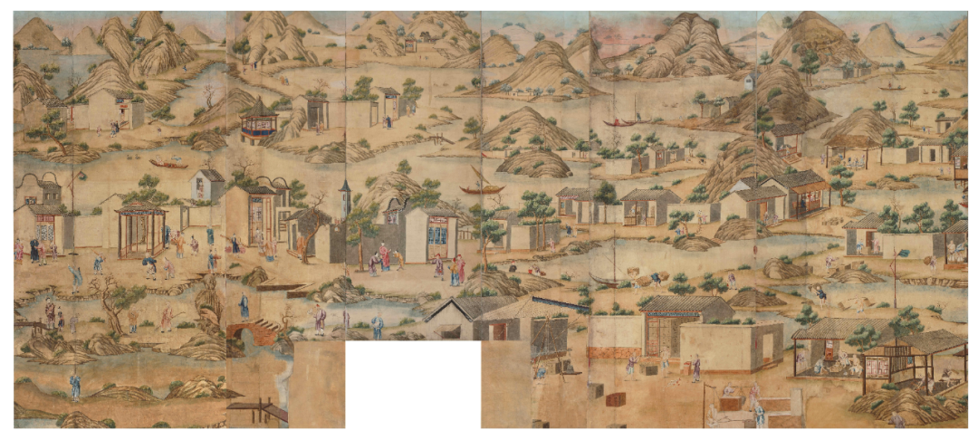 画面中有超过250个人物50余组生产生活场景。既是当时外销壁纸中的佳作,也是清代早期中英商贸文化交流的重要历史见证。