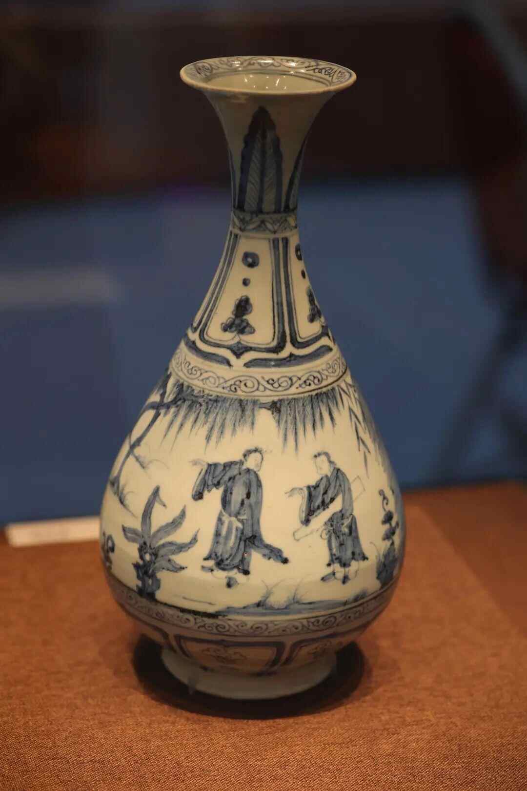 元青花大多来自海外进口的钴料,见证了元朝中国对海外贸易的扶持和参与,以及当年国际贸易的公平互利。元青花因传世器物稀少而弥足珍贵,该件玉壶春瓶因为绘有人物故事图而更显难得,是中西文化交流的典型产物。