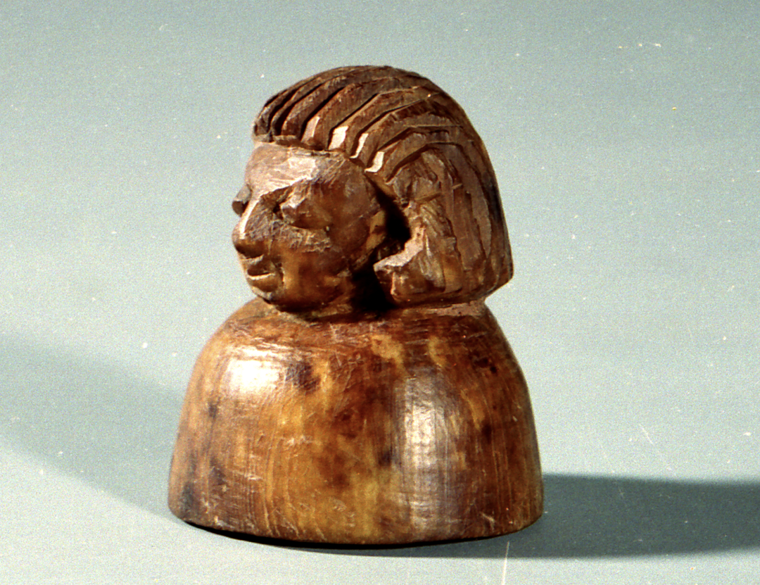 半身像,高鼻,深目,卷发,其面貌具有阿拉伯人的特征。器座为椭圆形,被认为是西亚地区常见的印章类型。专家推测它可能是阿拉伯商人私章的毛坯件。
