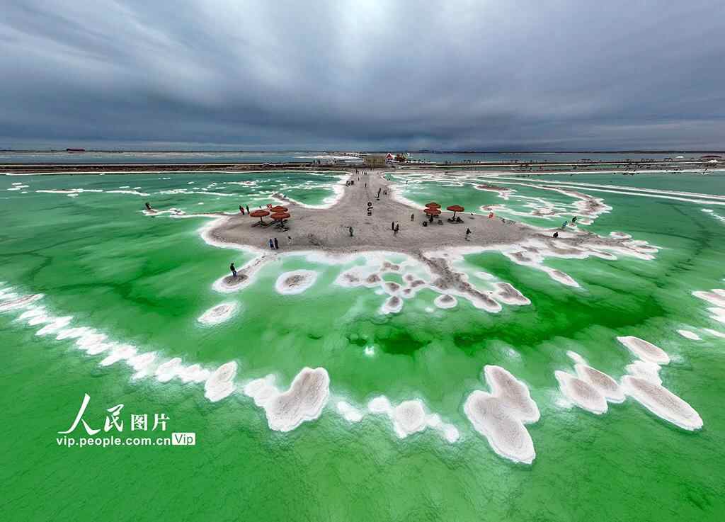 2025年10月12日,青海省海西蒙古族藏族自治州格尔木市,察尔汗盐湖风景区风光壮美,吸引众多游客慕名而来。张红心摄(人民图片网)