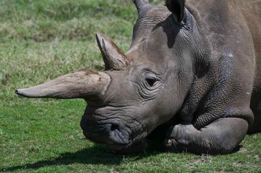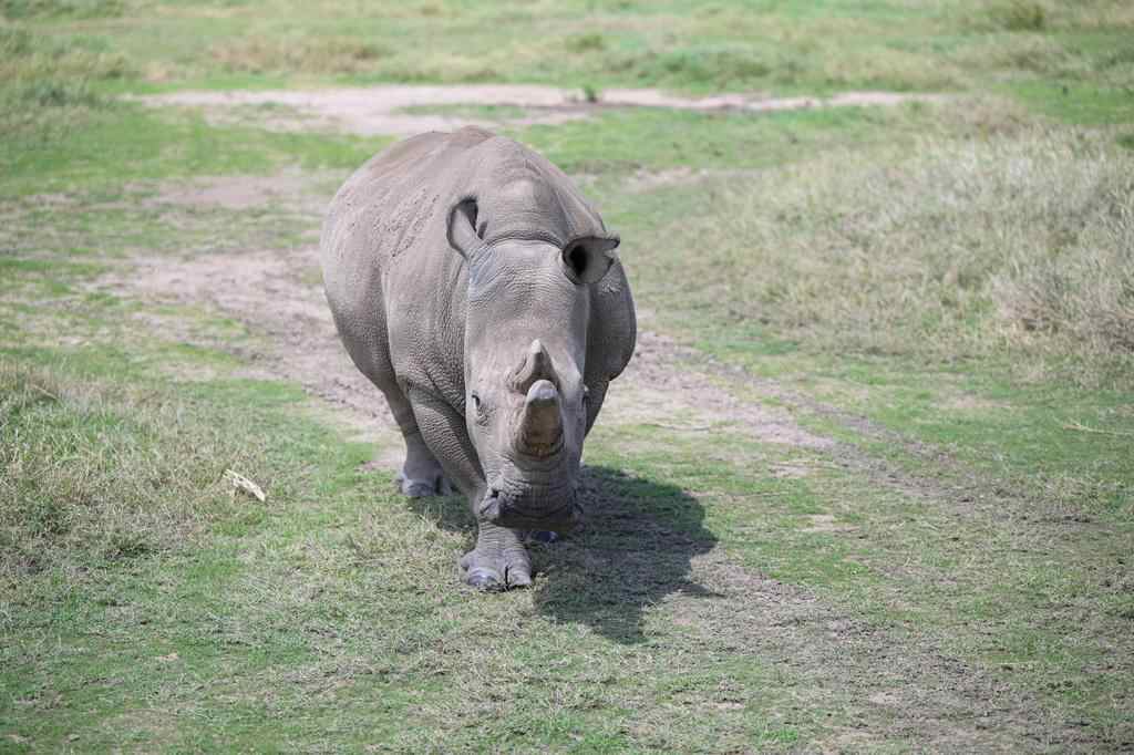 这是10月7日在肯尼亚中部莱基皮亚郡奥尔佩杰塔自然保护区拍摄的雌性北方白犀牛“法图”。