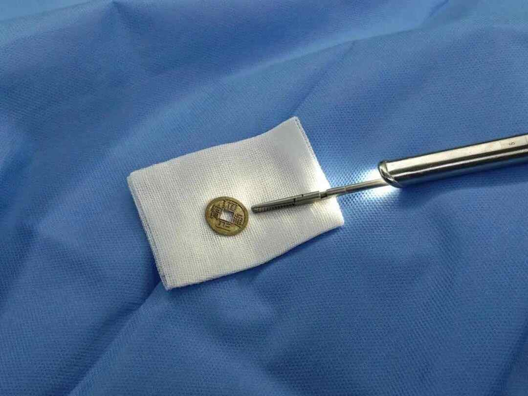 手术过程中,陈帅君教授团队用特制的小儿异物钳小心固定祈福币,避开食道黏膜,仅用2分钟就顺利将其取出。