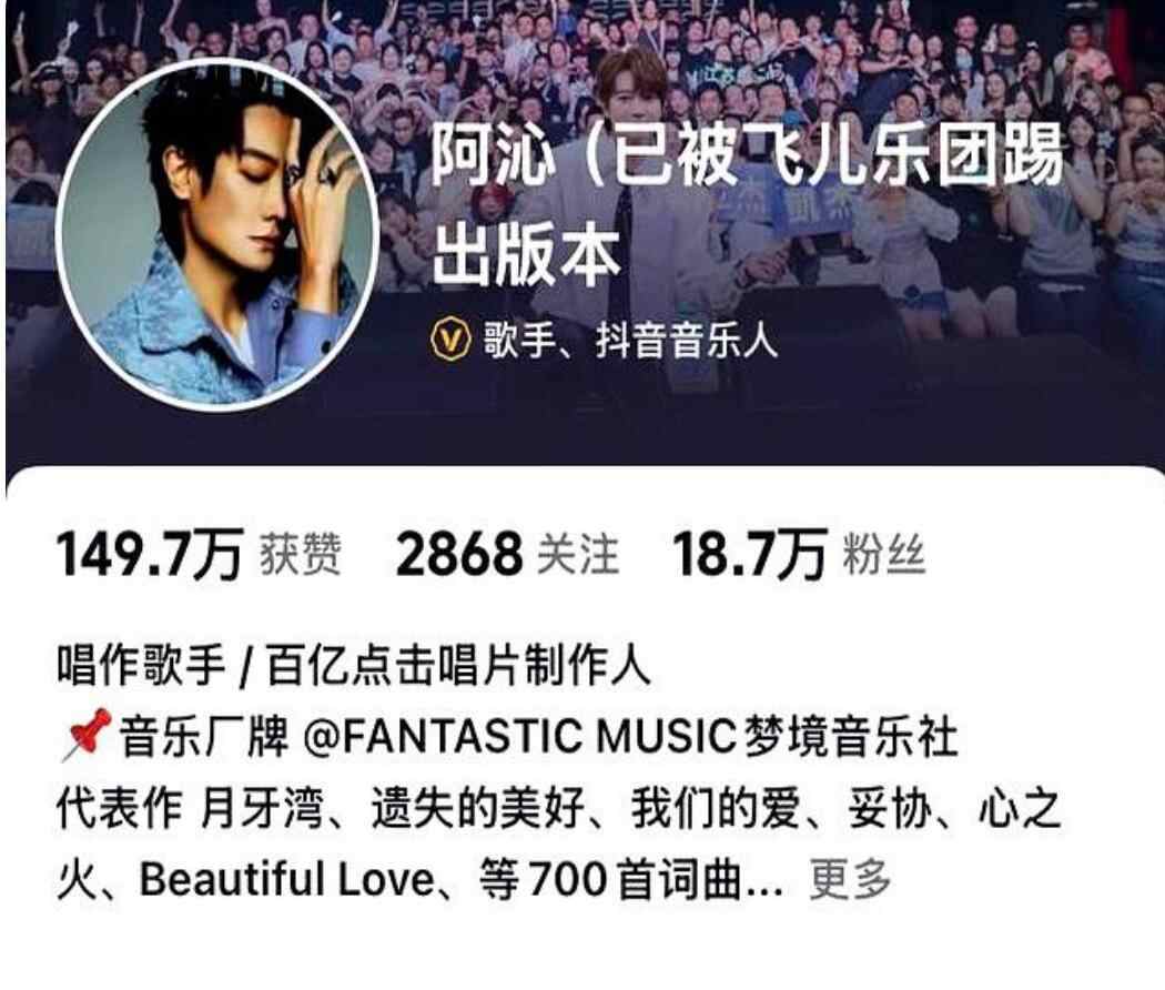 据此前媒体报道,阿沁曾在10月3日修改抖音账号名为“阿沁(已被飞儿乐团踢出版本”,并发布视频称自己是被踢出了飞儿乐团,并直言“被踢出并不意外”。