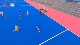 红蓝球场内,曲棍轻舞飞扬。