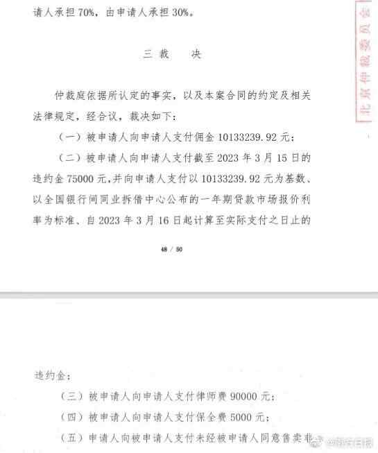 麻六记在声明中称,公司已经支付了佣金,孟贺方违法违规行为已获北京仲裁委员会裁决认定,孟贺方应立即停止误导、诋毁等侵权行为,并公开赔礼道歉。