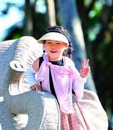国庆中秋假期,家长带着孩子在海南三亚南山文化旅游区游玩。新华社发