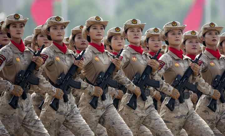2025年9月3日,纪念中国人民抗日战争暨世界反法西斯战争胜利80周年阅兵式现场,英姿飒爽的女民兵方队步伐铿锵走过天安门广场,光荣接受习近平总书记检阅,接受党和人民检阅。