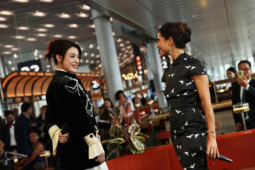 2024年10月10日,在法国巴黎戴高乐机场举行的“中法金秋文化盛宴”活动上,越剧演员陈丽君(左)和法国歌手乔伊丝·乔纳森联袂演绎越剧选段。越来越多青年女性成为“国潮”热和非遗“活态”传承的中坚力量,使非物质文化遗产以全新姿态融入当代生活、走向世界。