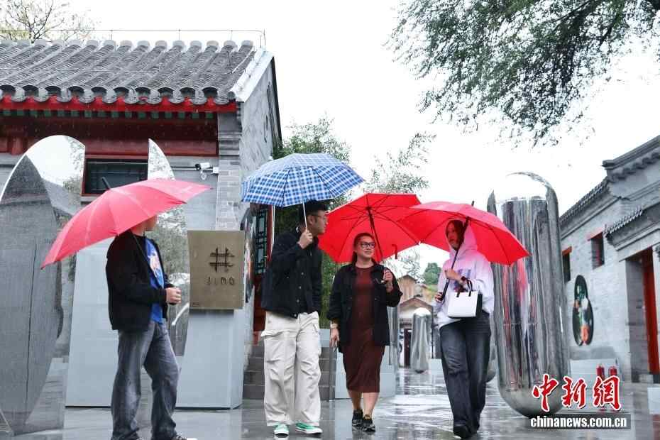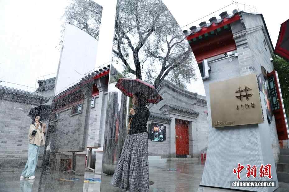 10月10日,北京三眼井胡同,展览中的AI数字艺术作品吸引游客。《镜观·曼波》展览正在位于北京三眼井胡同的胡同美术馆展出。