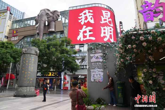 昆明街头大象“穿墙”艺术装置吸引市民打卡