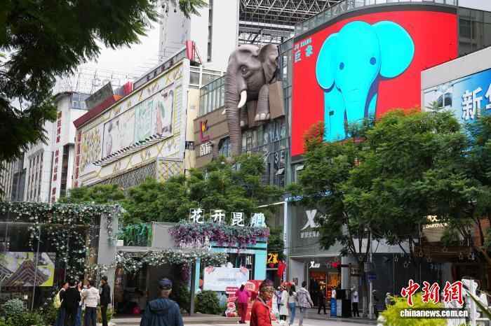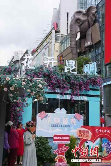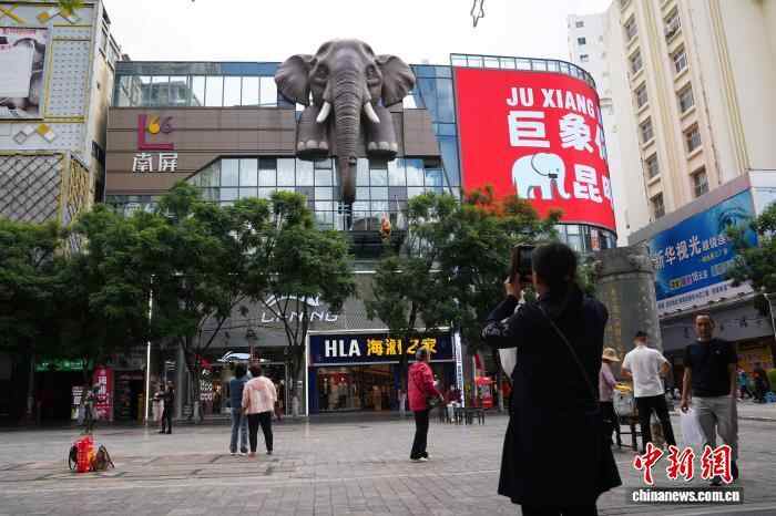 10月10日,“穿墙而出”的大象艺术装置成为昆明街头一景。中新社记者 刘冉阳 摄