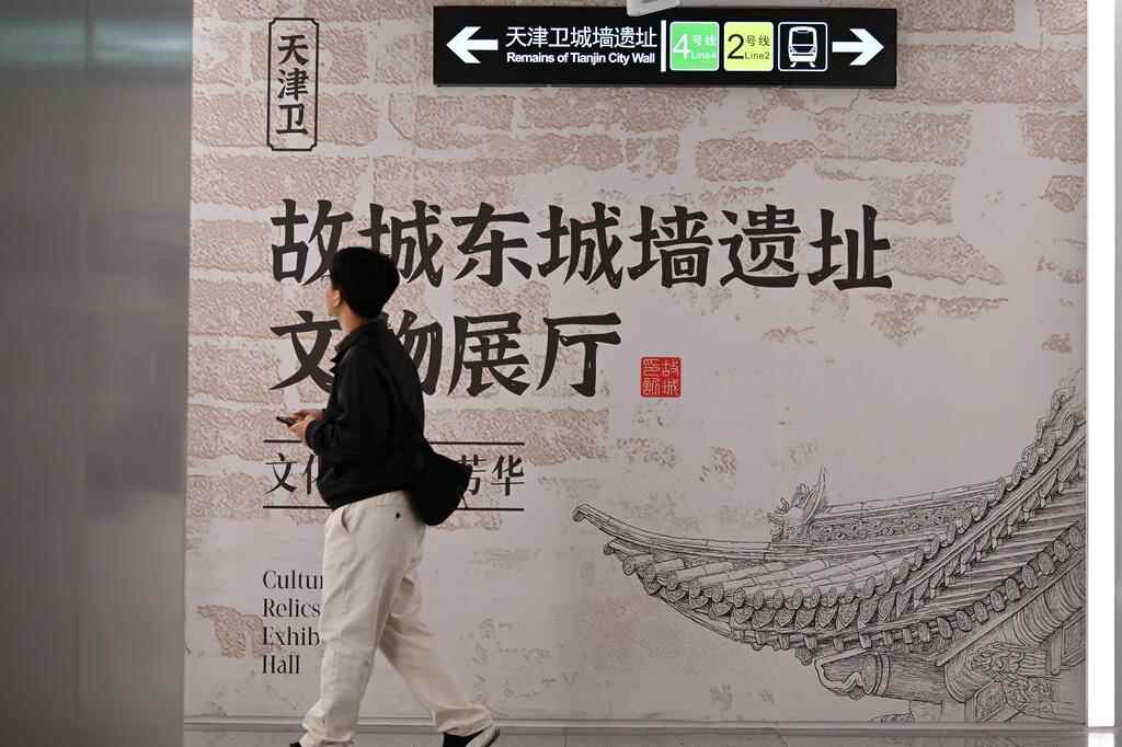 近日,位于天津地铁4号线东南角站的天津卫故城东城墙遗址文物展厅正式开放,展厅内21米长的城墙遗址层次分明,让乘客在出行时也能了解天津历史。