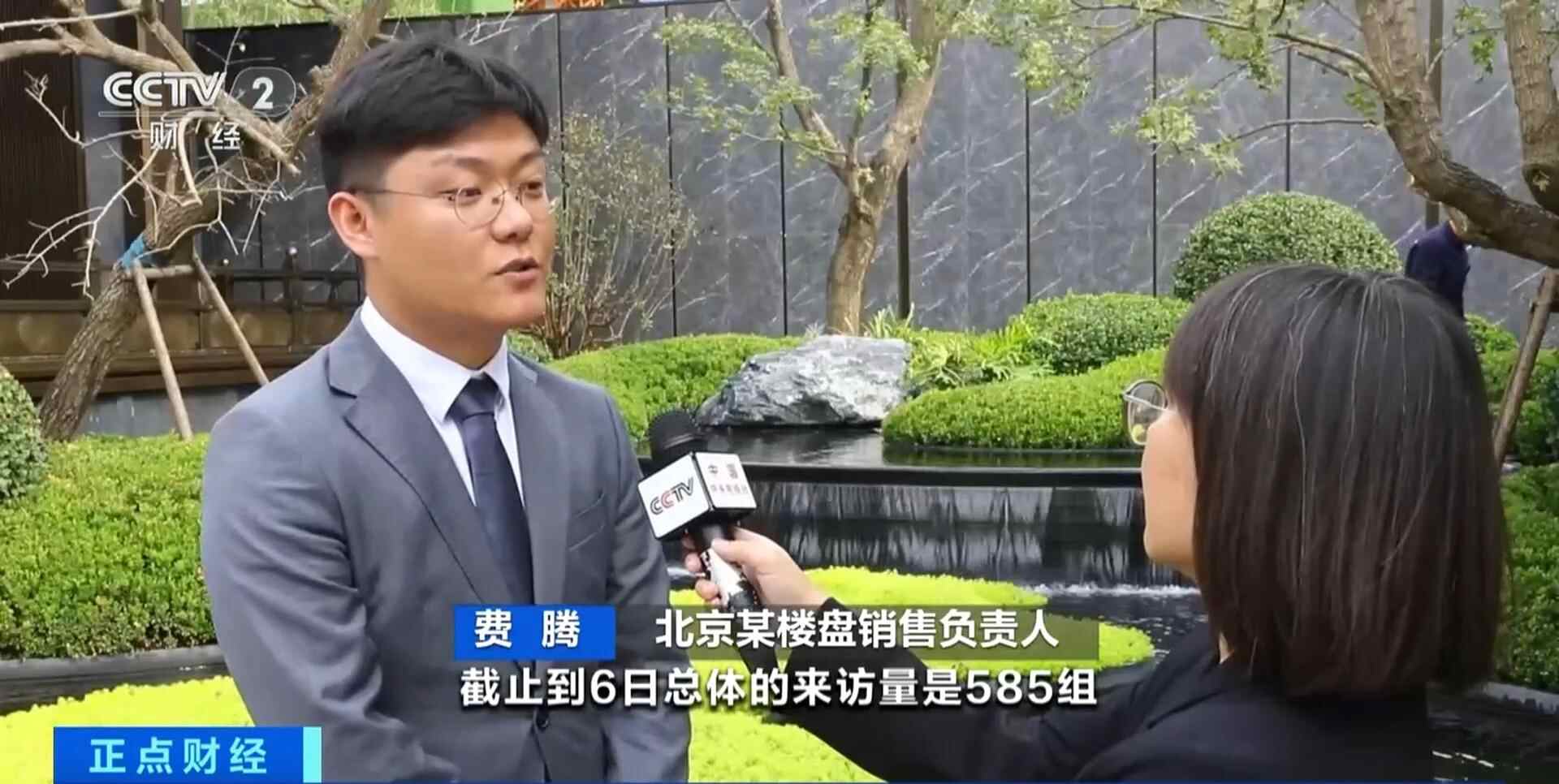北京某楼盘销售负责人 费腾:从3日开始,整体的客户到访量明显增加,基本维持在每天130—170组之间,截止到6日,总体来访量是585组,我们现在延迟到9点(下班),的确晚上看房的客户也比较多。