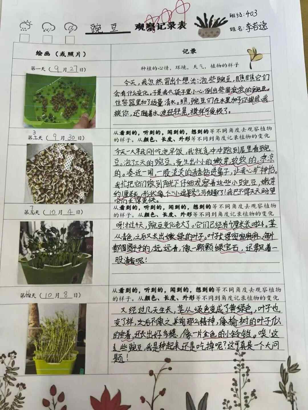 朴老师说:“平时生活中,孩子们很少会有连续观察的习惯。小长假期间的观察,让孩子们留下了很多真实、宝贵素材。回校后我们就会在习作课上对大家的记录进行点评,进一步修改,最后形成一篇完整的观察日记。”