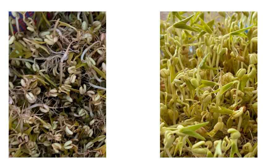 “最搞笑的是,最后一天我们又回诸暨接上老人回杭,一家五口本来一辆车坐得刚刚好,现在还要给这个桶腾个位置,搞得我们坐得很拥挤。晚上到家,我们就把豆芽给炒了,绿豆这一生也值了。但是这回一下种太多了,根本吃不完,现在家里还有一桶。”