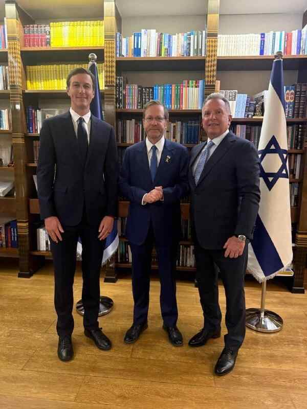 美国中东事务特使维特科夫与总统高级顾问库什纳9日晚与以色列总统赫尔佐格举行会面。会晤期间,赫尔佐格与两位美国官员讨论了遣返被扣押人员并结束加沙冲突的协议细节。在与以色列总统会面结束后,美国中东事务特使维特科夫与总统高级顾问库什纳加入了正在进行的以色列内阁会议。