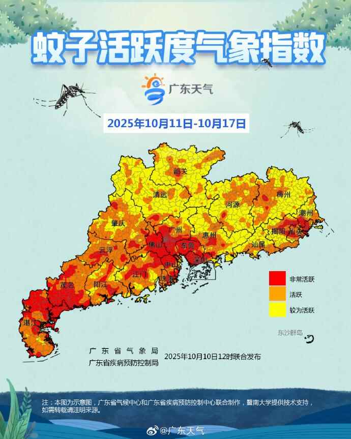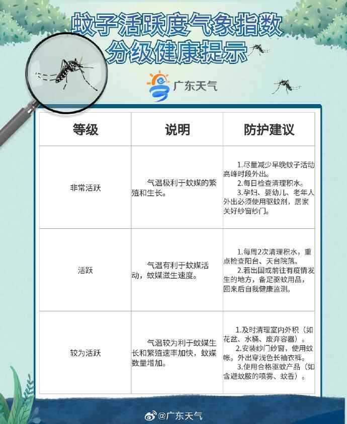 值得一提的是,广东省气象局与广东省疾病预防控制局近日联合发布“广东蚊子活跃度气象指数”——未来一周,广东大部市县蚊子活跃度“爆表”!