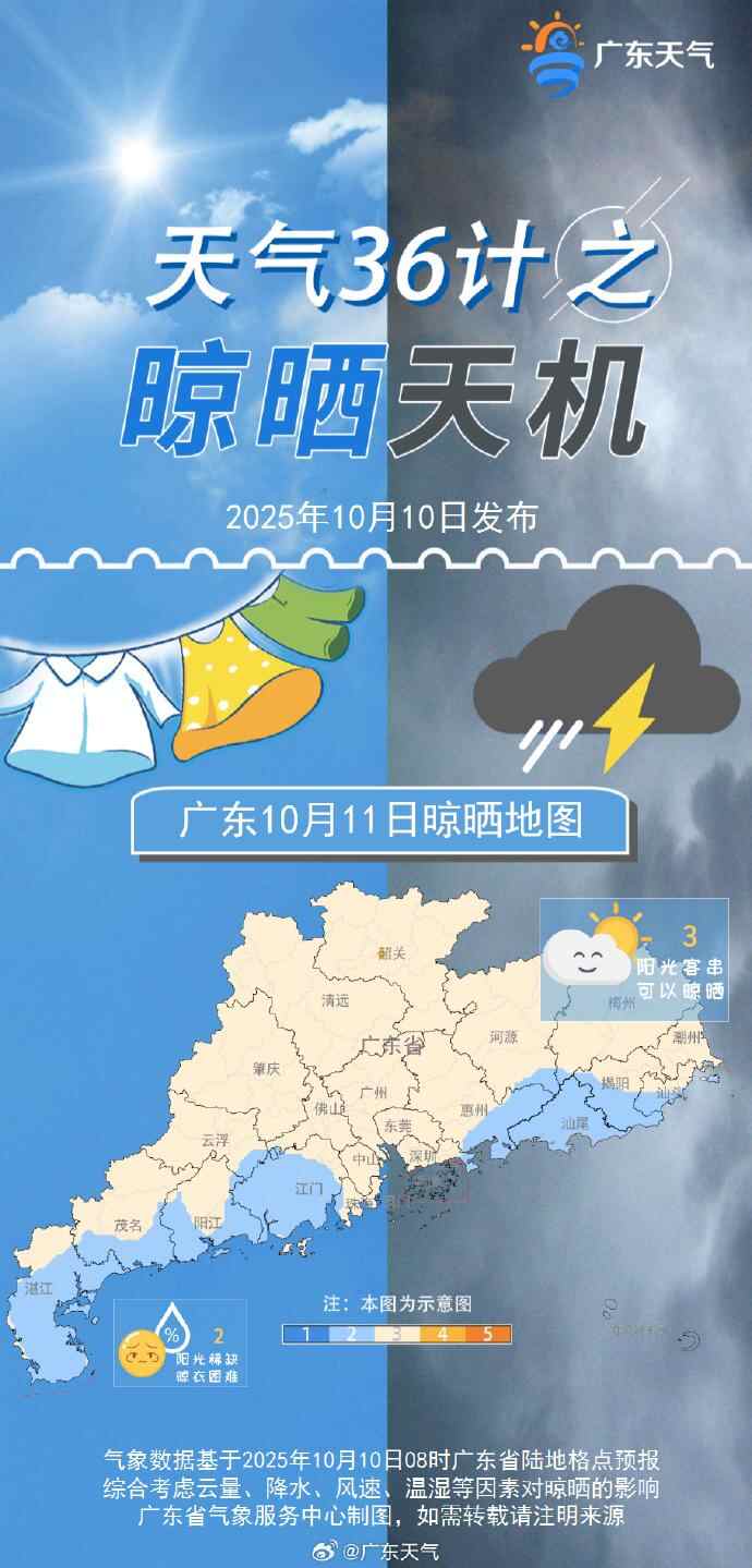 要留意的是,今天广州还是熟悉的晴热干燥天!有衣服、被褥要晾晒的街坊,可得抓紧这波好天气赶紧动手 ——12日起雷雨重返,局部雨势较大,到时候气温会稍微降一点,但出门一定要记得把雨具揣好。