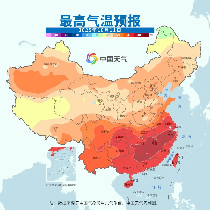 南方的“秋老虎”依旧凶猛,江西、浙江、福建、湖南等地11日至13日仍有35℃以上高温,局地可达38℃以上。