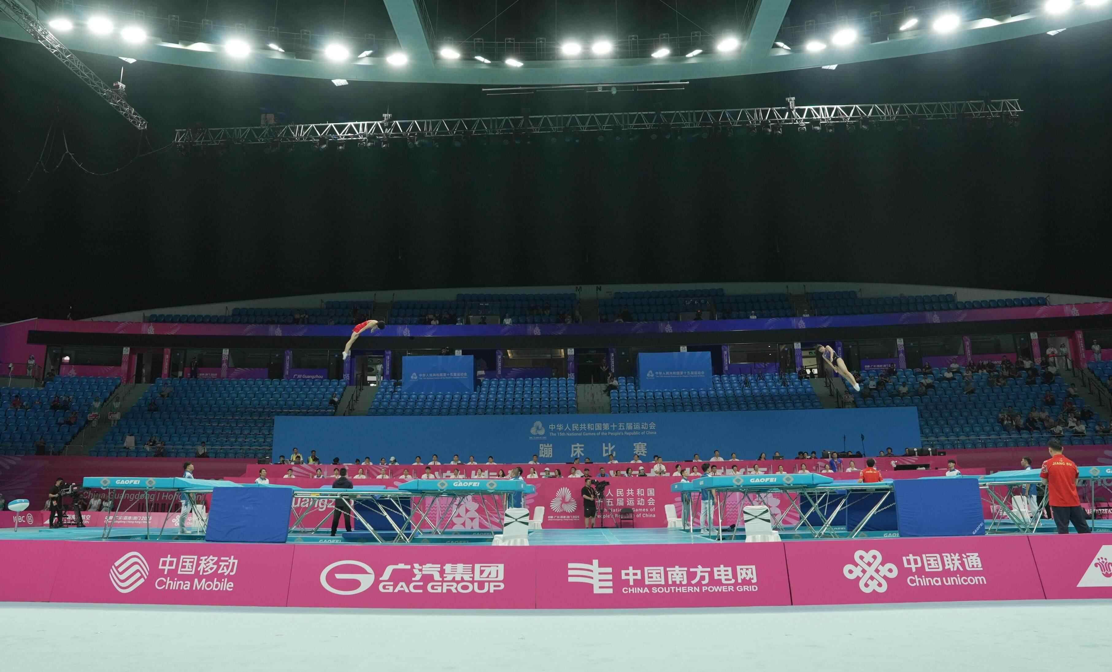 ◆十五运会蹦床赛事打响,全国118名高手将角逐4金。详情-->