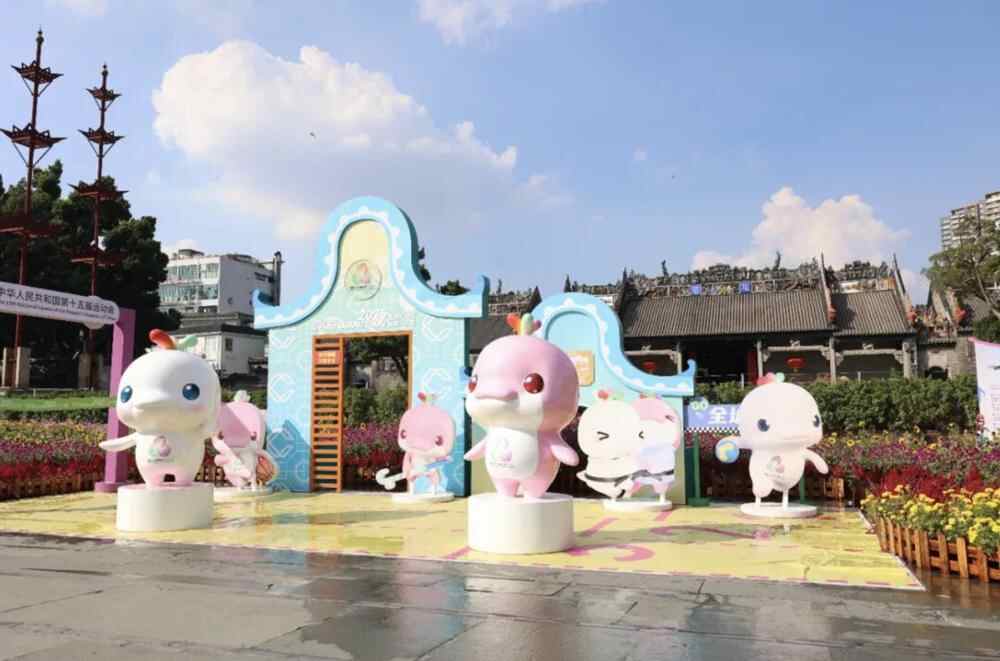 第十五届全国运动会将于11月9日在广州开幕。距离开幕不到30天的时间,广州市荔湾区的大街小巷换上了全运会主题“盛装”,紧扣“文旅+体育”,在陈家祠、沙面、永庆坊、白鹅潭大湾区艺术中心、上下九步行街五大热门景区打造“赛事+文化”的打卡装置,诚邀市民游客打卡十五运会和残特奥会吉祥物“喜洋洋”“乐融融”。