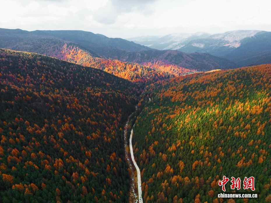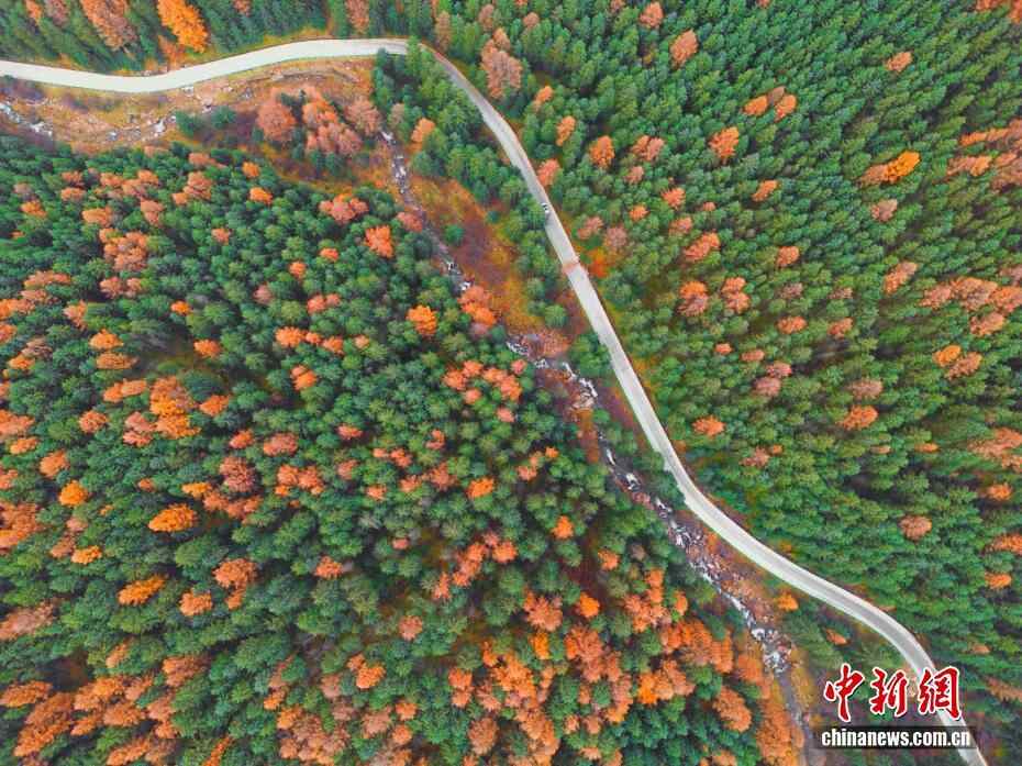 五寨沟森林经营总面积44.5万亩,现存天然次生林11.2万亩,从空中俯瞰,犹如被打翻的调色盘。