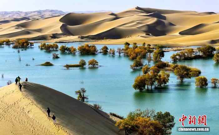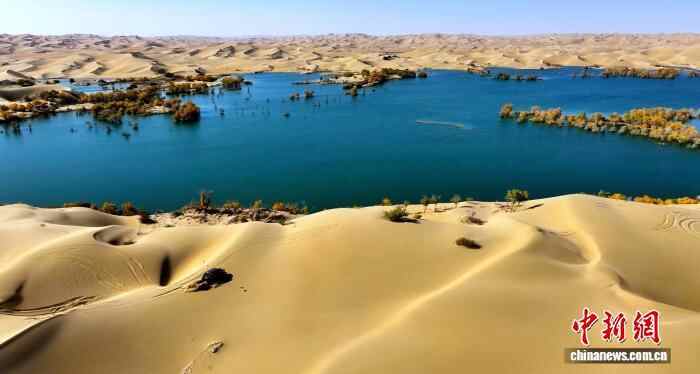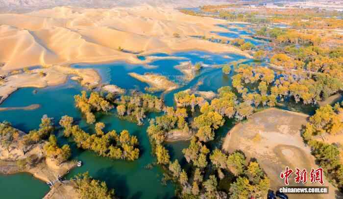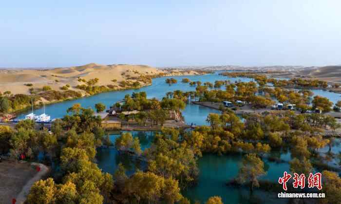 金秋十月,新疆塔里木垦区胡杨迎来最佳观赏期。位于铁门关市三十三团的葫芦岛胡杨尽数染黄,与蓝天、碧水、沙丘相映,绘就大漠金秋画卷,吸引全国各地游客慕名而来。杨丽娜 摄