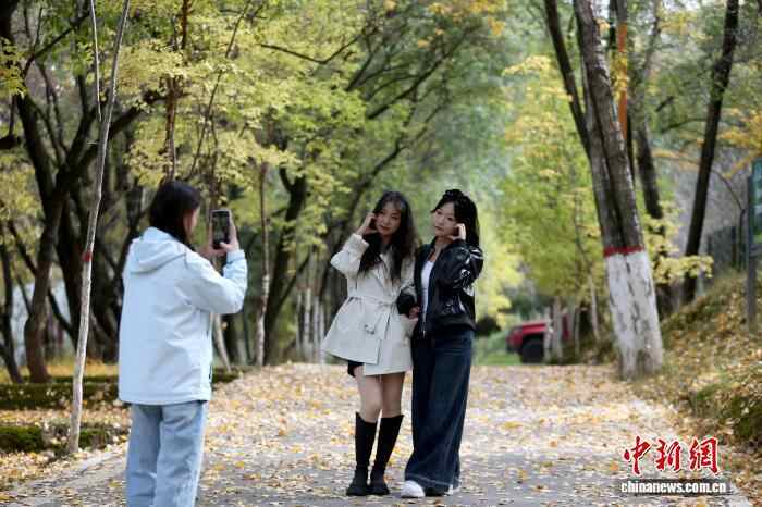 10月16日,市民在青海省西宁植物园内赏景游玩。随着气温不断降低,西宁市彩叶树木层林尽染,吸引不少市民前来赏秋。 张忠苹 摄