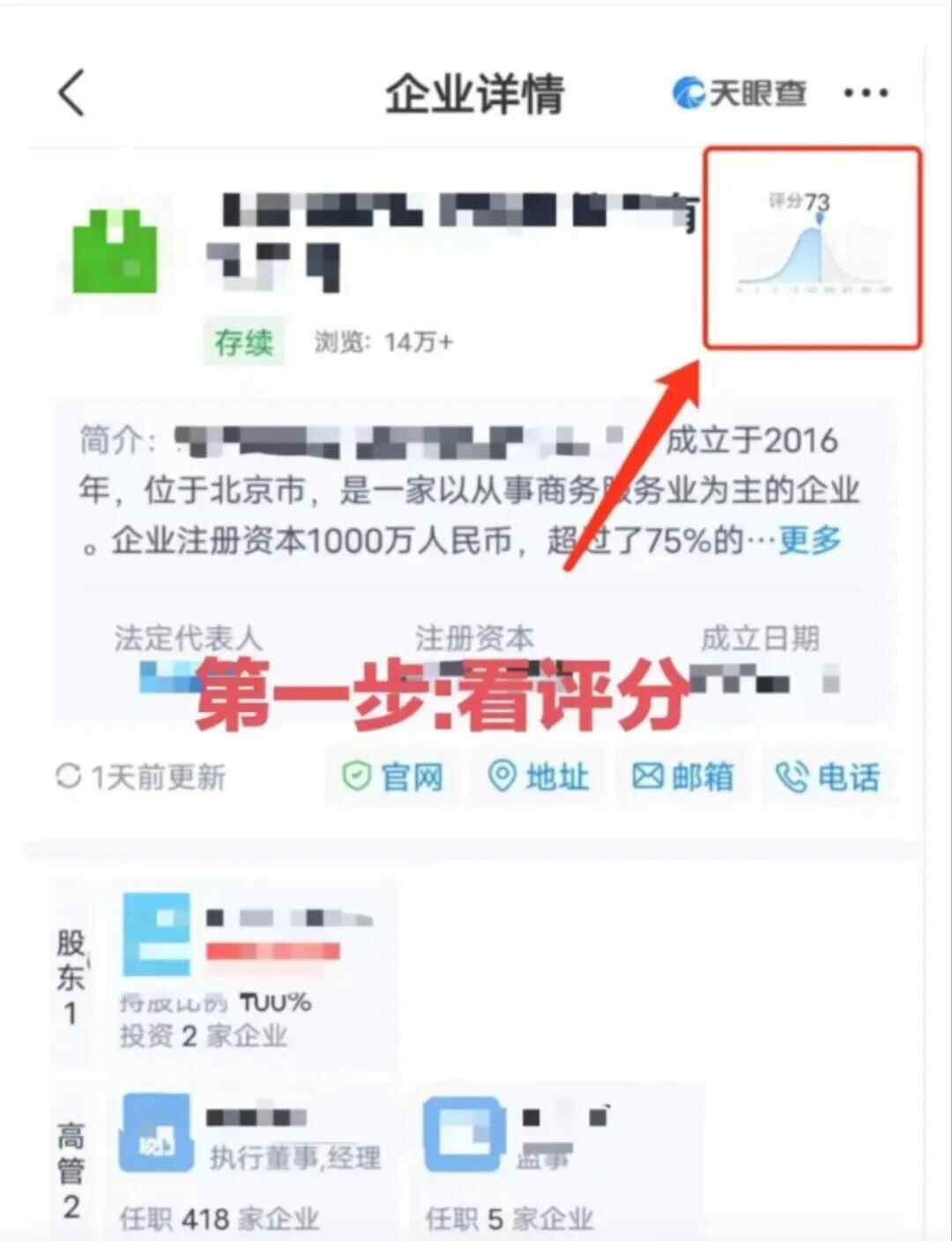 打开天眼查,点进你想要求职的公司,就可以看到这家公司的评分,作为大家筛选公司最简单粗暴的方法。