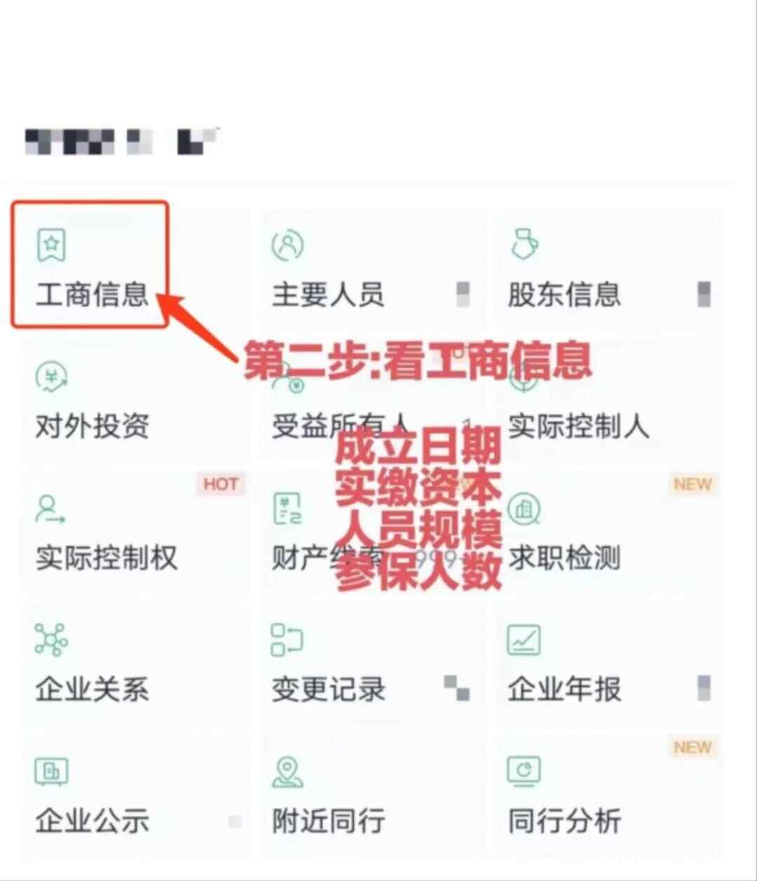 工商信息里,我们可以重点看该公司的成立日期、实缴资本、人员规模和参保人数。