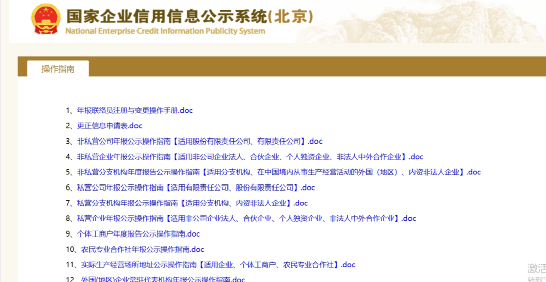 以企业信用信息系统“操作指南”-“私营公司年报公示操作指南【适用有限公司、股份有限责任公司】”为例: