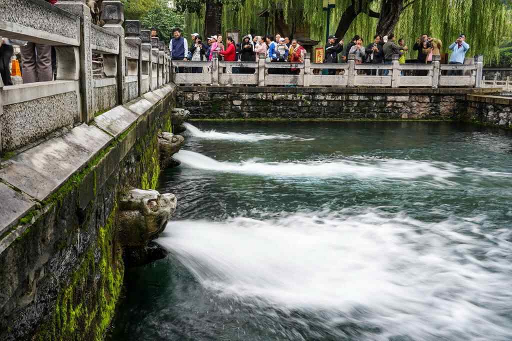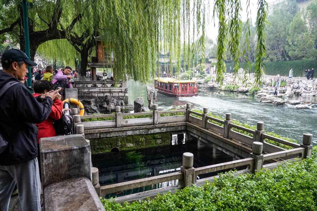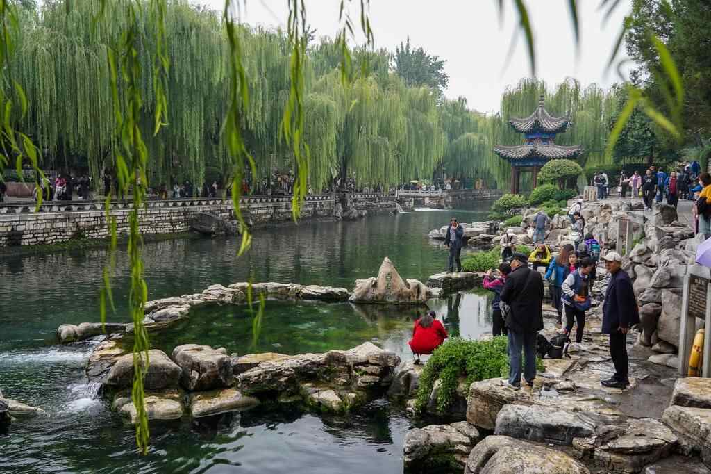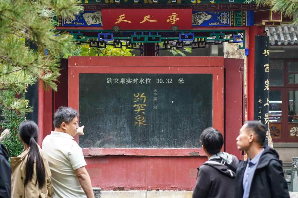 10月15日,游客在济南趵突泉公园观光游览。趵突泉实时水位达到30.32米,刷新1966年以来的最高水位纪录。