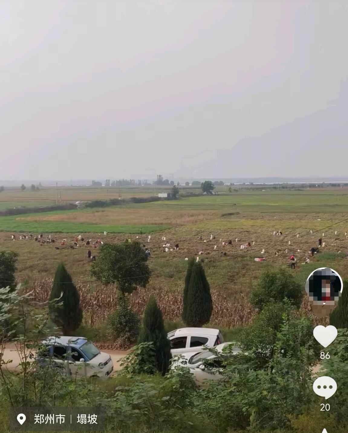 10月14日,有网友发视频称,自己的母亲听说黄河滩可以免费捡花生,几十公里顾不住油钱也要来,又玩了又有收获,走的时候“美得不得了”……画面显示,乡村路边停了许多车辆,地里有数十人正在捡花生。视频定位在黄河岸边的河南郑州巩义市康店镇塌坡。