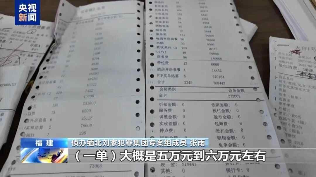 侦办缅北刘家犯罪集团专案组成员张雨分析,平均每晚消费一单5万到6万元左右,每日营收60万元左右。从营业汇总来看,比如2023年6月25日,当天营收了67.8万元。这些只是不包括吸毒的日常消费,集团在其中每一项都能赚到钱。
