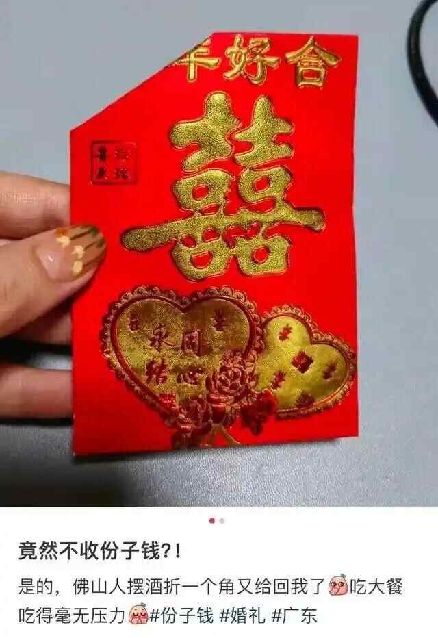 面对亲友递来的红包,新人轻轻一折便予以归还,口中说着“心意收到”。许多广东网友留言说,此风俗在省内多地很常见,“红包过一下手、折个角,就是把祝福收下”。